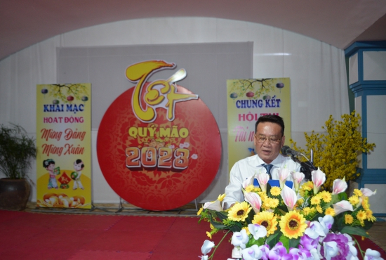 Đồng chí Huỳnh Chí Dũng - Giám đốc Nhà Thiếu nhi tỉnh Cà Mau phát biểu khai mạc hoạt động “Mừng Đảng - Mừng Xuân” Quý Mão 2023.