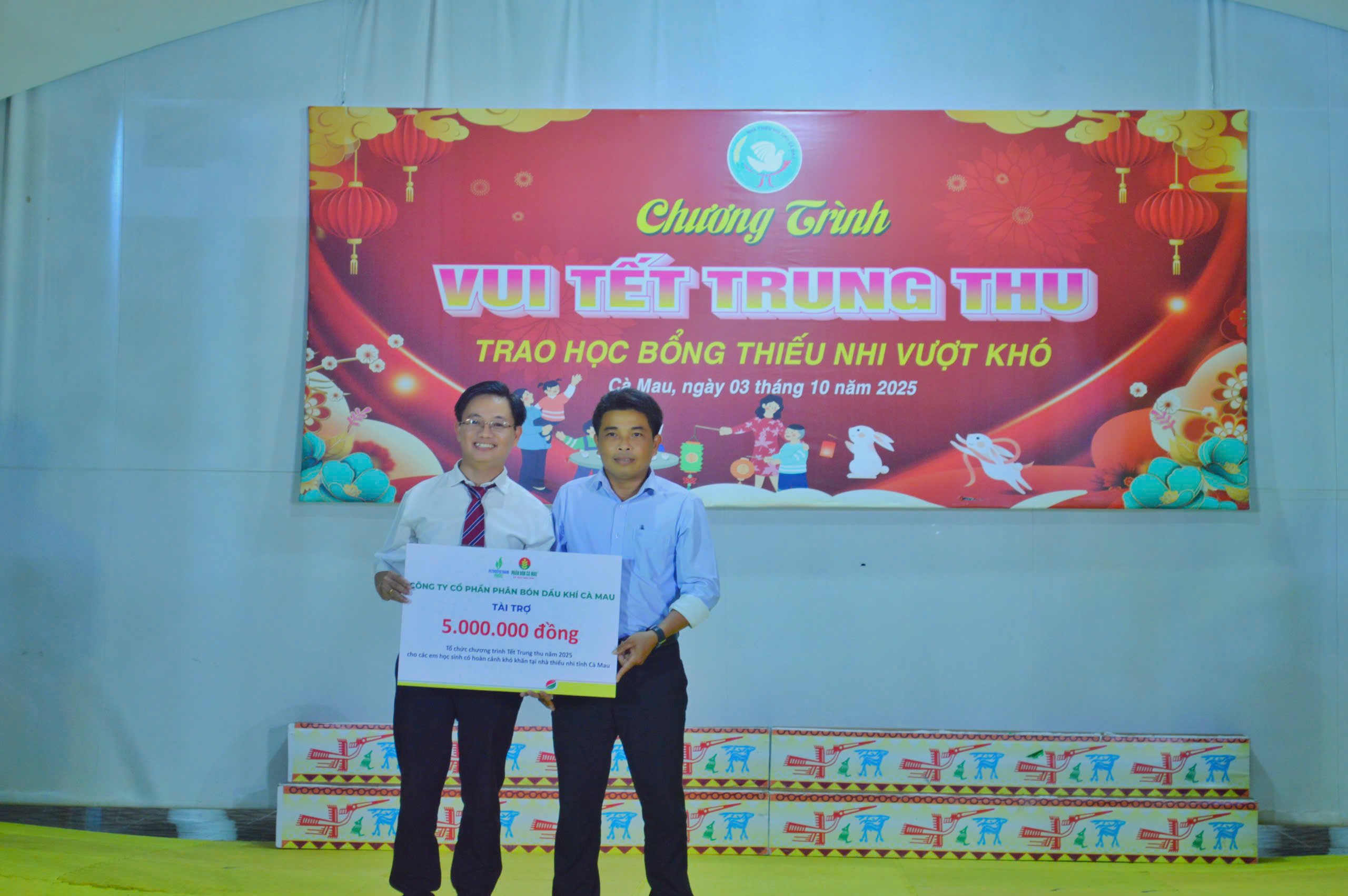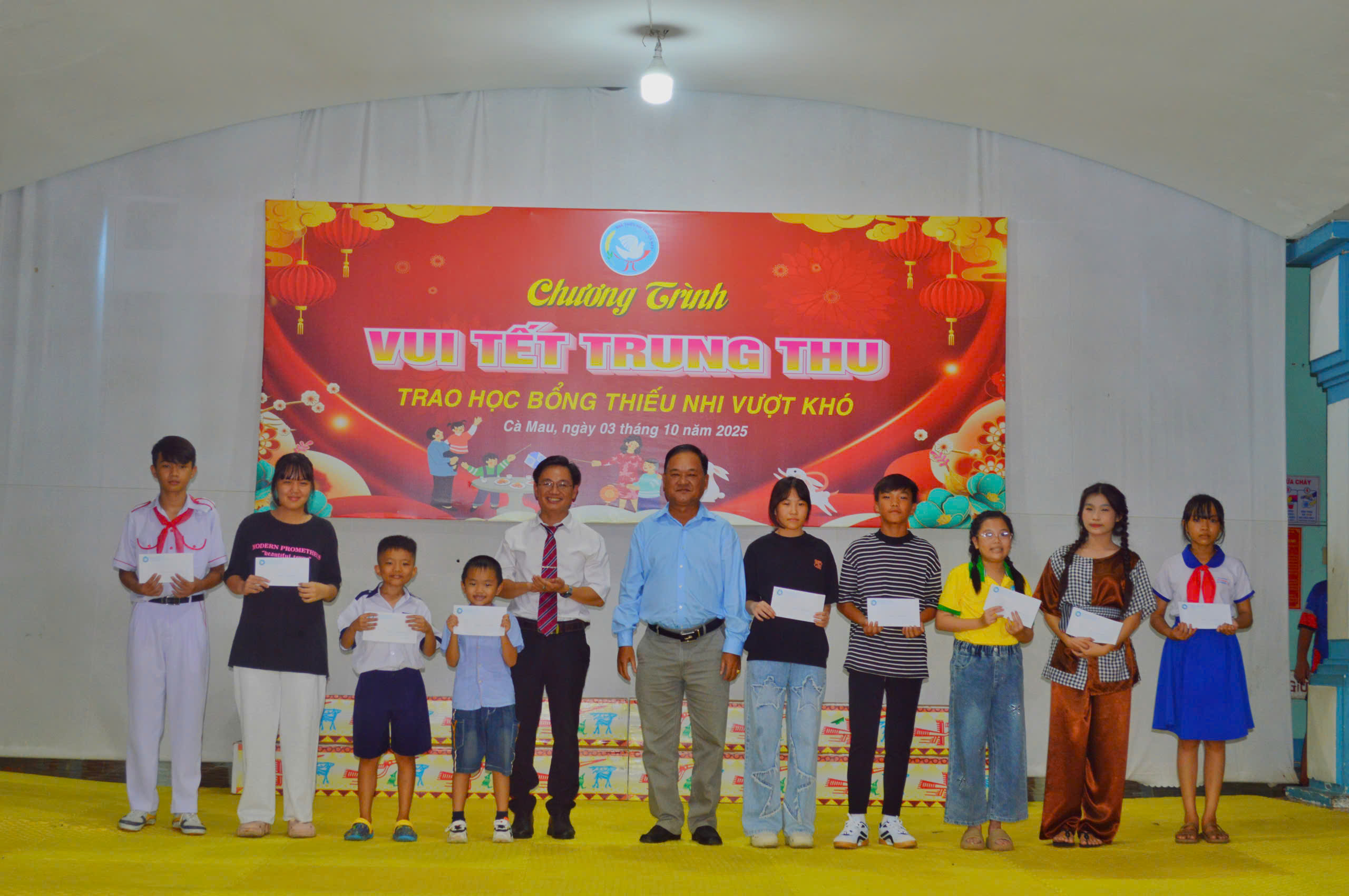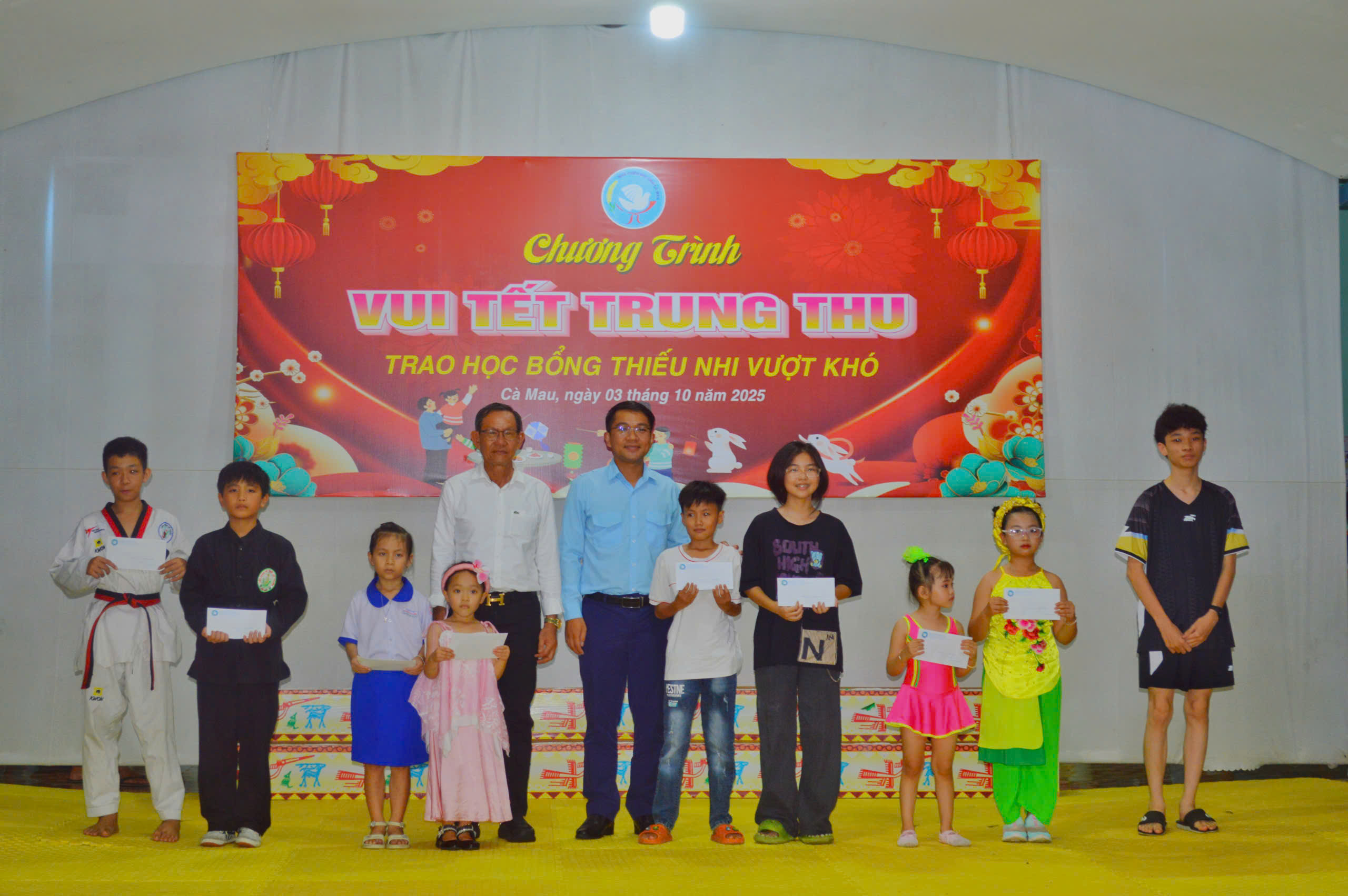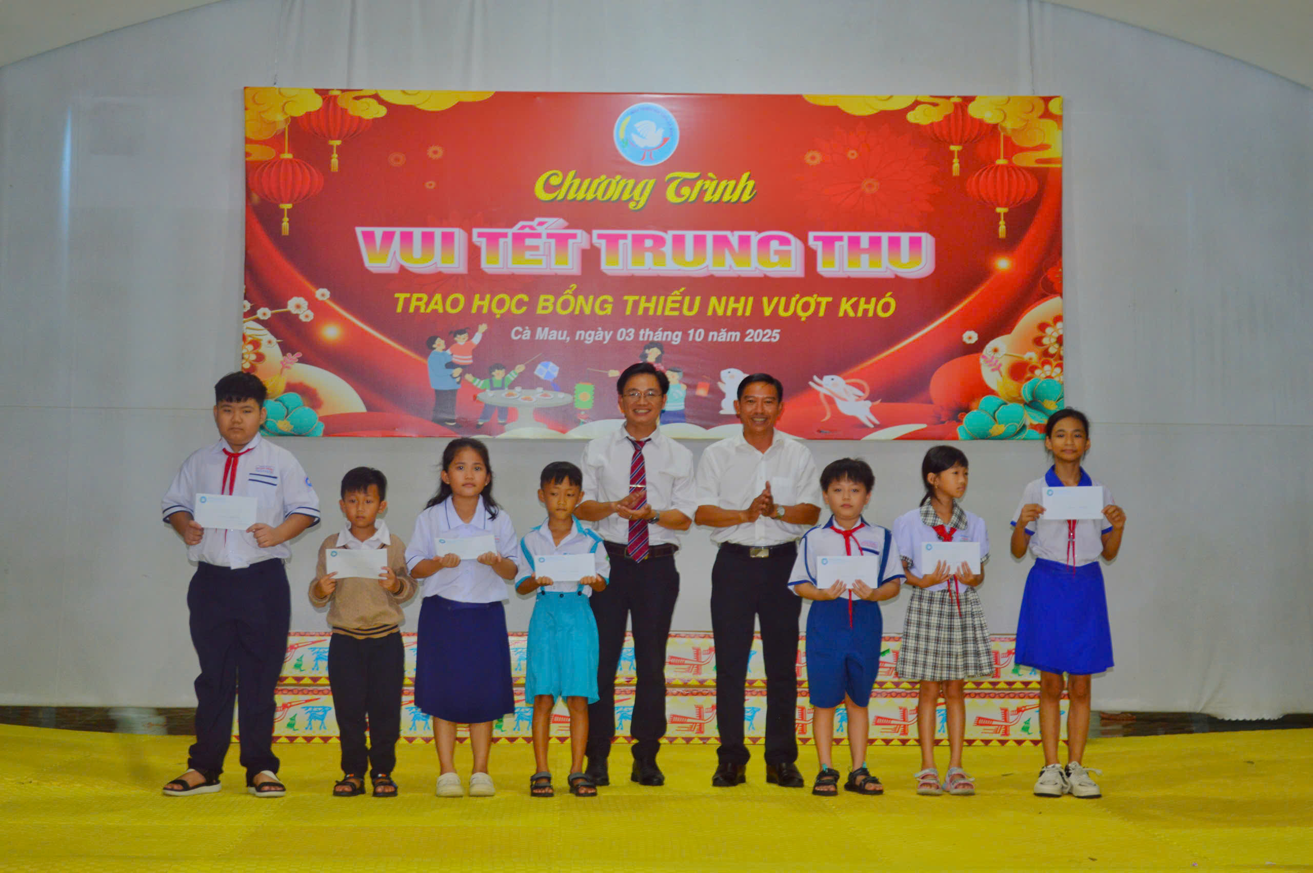 Dịp này, Nhà Thiếu nhi tỉnh Cà Mau đã vận động trao 40 suất học bổng, mỗi suất trị giá 500 ngàn đồng đến thiếu nhi có hoàn cảnh khó khăn.